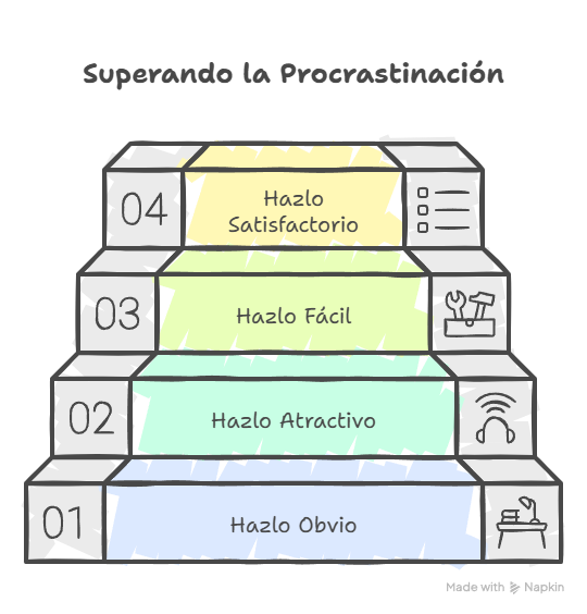 📌 Hazlo muy fácil: Quita todos los obstáculos posibles. Si una tarea te parece gigante, empieza por algo que te tome solo dos minutos. Es mucho más fácil seguir cuando ya has empezado. Prepara tu espacio de trabajo y tus herramientas para que todo fluya.
